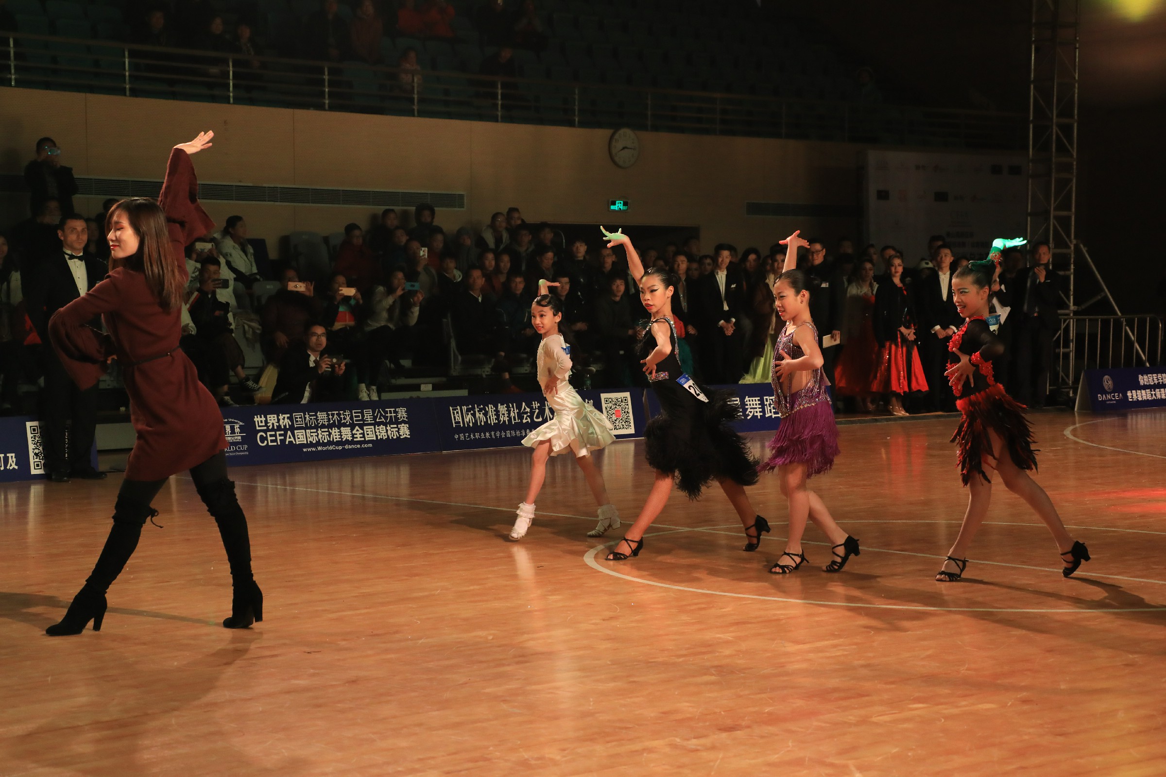 12月31日的白天,继续进行了青少年与壮年拉丁舞的总决赛比拼,中国的青少年国标舞(体育舞蹈),特别是拉丁舞的进步是有目共睹的,在众多的世界前六名选手的参赛下,壮年拉丁舞今天都表现极高的技术素养与艺术修养,如此一场全国性的比赛如等同于“世界大赛”的规模。为了避开寒冷天气的不利因素,在组委会暖心的安排下,所有的赛事检录都在场馆内完成,保护青少年是我们的职责,更是我们艺术教育的使命,调派全国各地精锐评委执裁赛事更体现赛事的专业与公正之宗旨,在升级改善后的竞赛系统流畅运作下,在劳苦功高的竞赛委员会的专业组织下,本次赛事在检录、竞赛、计分、颁奖等环节表现得有条不紊,在零投诉的情况下,照公示的赛事流程按时、安全地完成了白天赛事的运作。