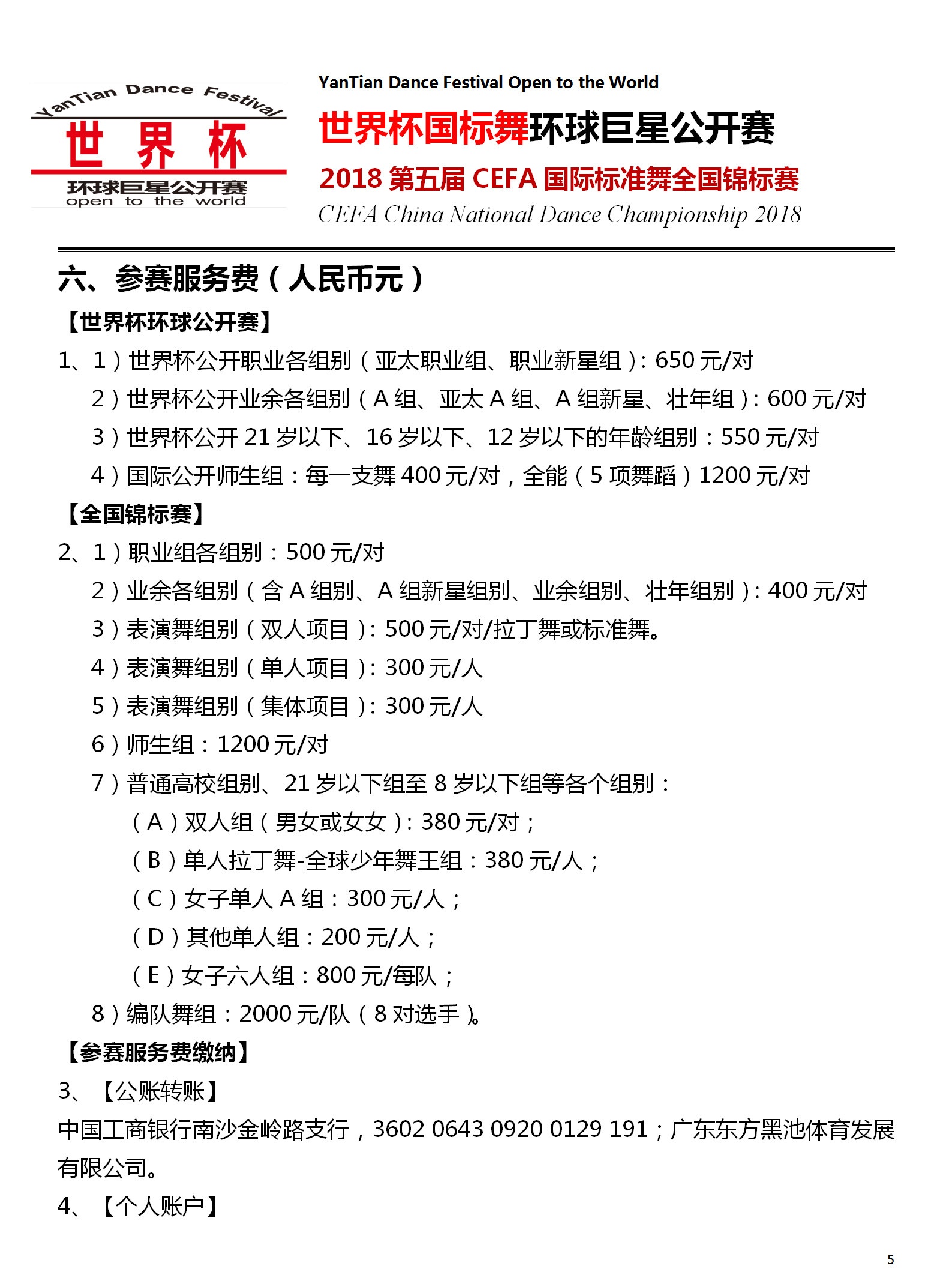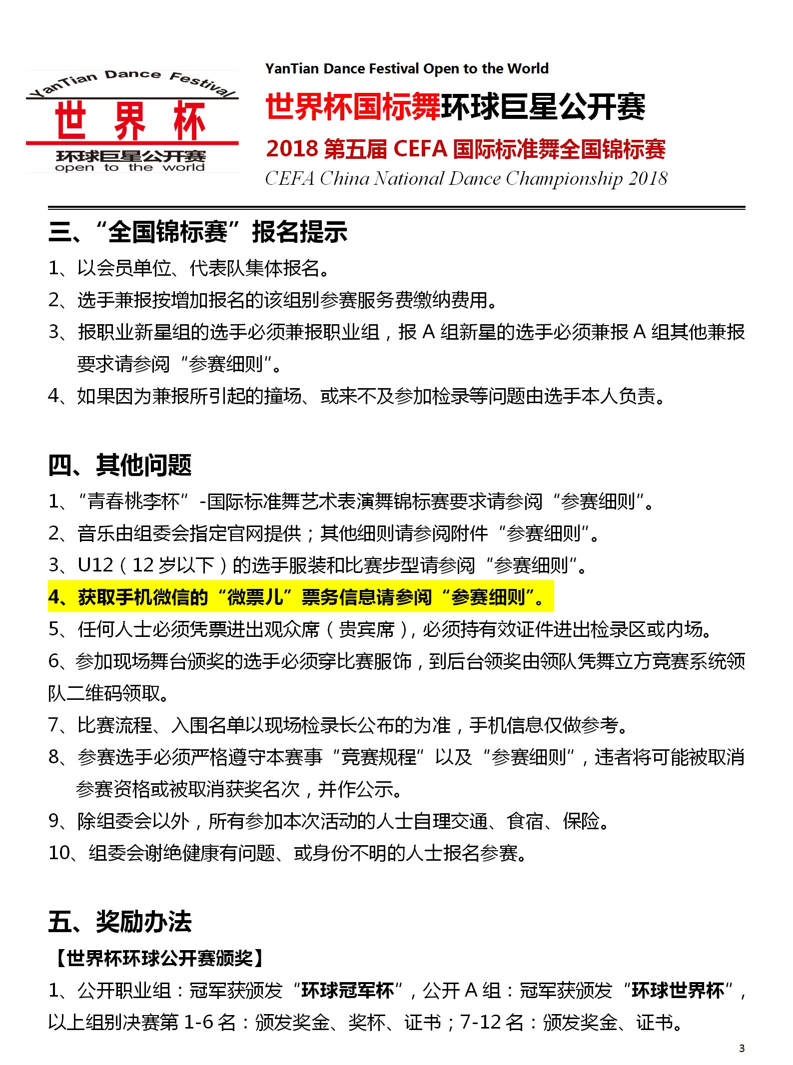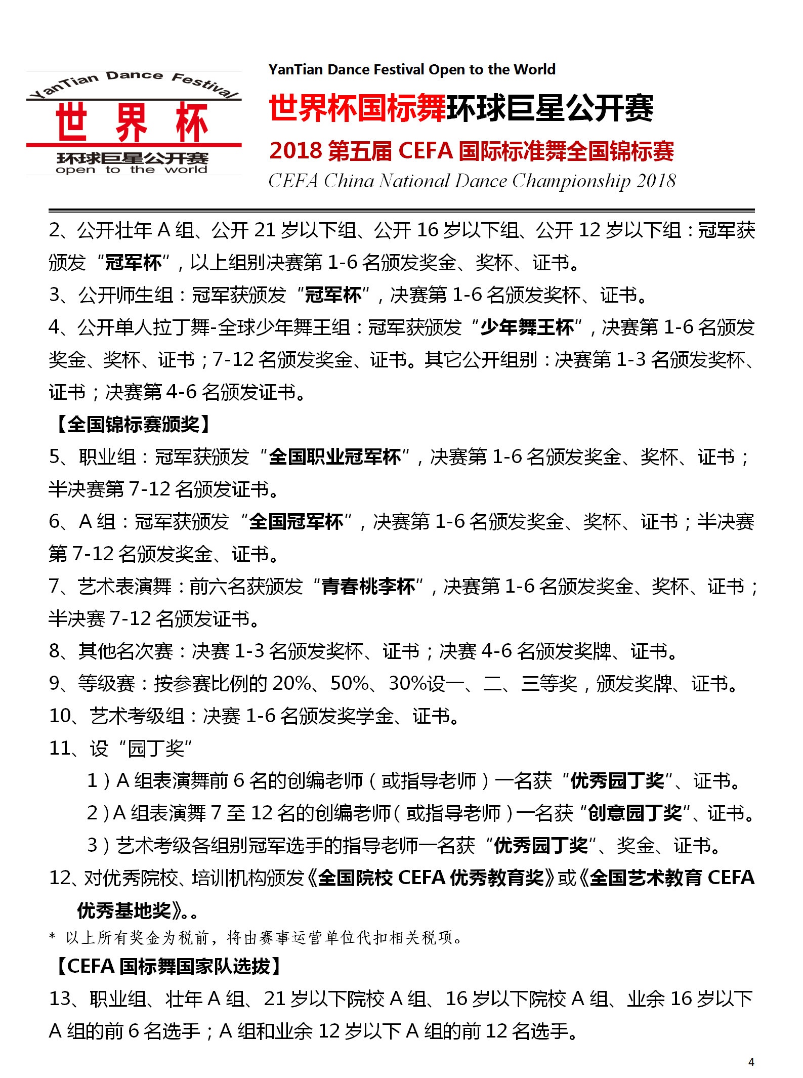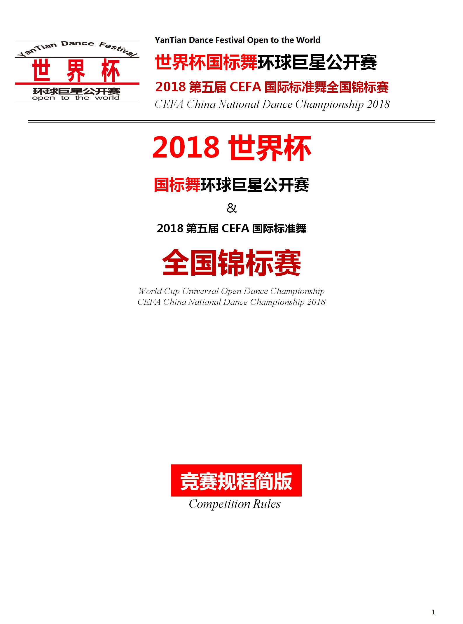 【竞赛规程简版】2018世界杯国标舞环球公开赛暨CEFA全国锦标赛